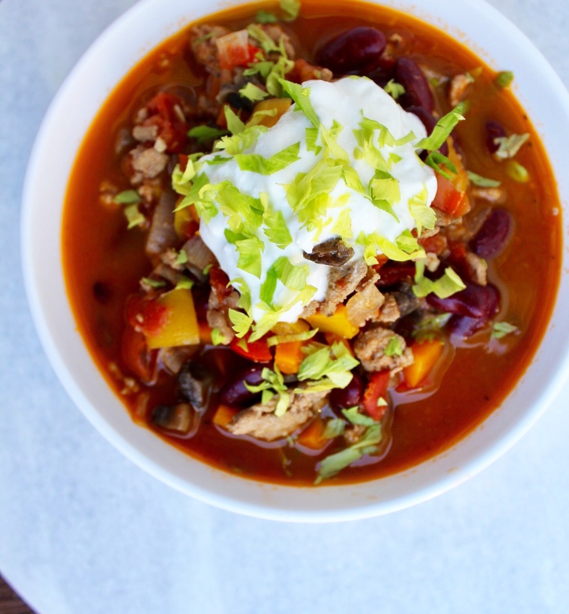 As much as everyone (except me) hates to admit, soup season is upon us! A long and cold day calls for a warm bowl of chili for dinner. Luckily, this one is packed with tons of veggies, fiber and lean protein. Keeping up with those classic flavors, top with grated cheddar cheese, tortilla chips, plain Greek yogurt (you won’t even miss the sour cream), and fresh cilantro!