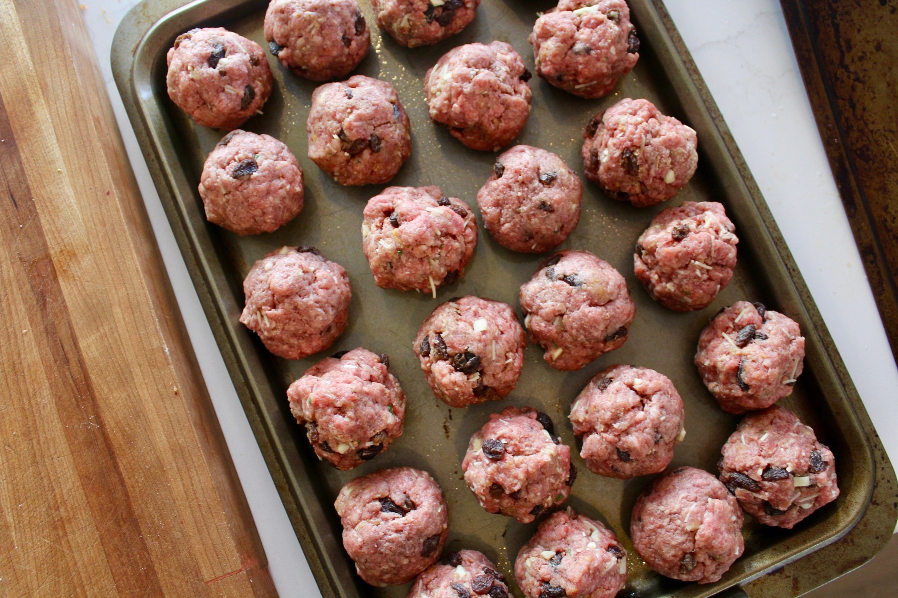 If you know me personally then odds are you’ve been coerced into trying my mom’s meatballs at least once. This recipe holds a special place in my heart because of the tradition it holds and the memories it carries. When I was first *attempting* to learn how to cook, this recipe was the perfect place to begin because it is practically fool-proof. An extra sprinkle of Parmesan or additional raisins just make this recipe even more unique.